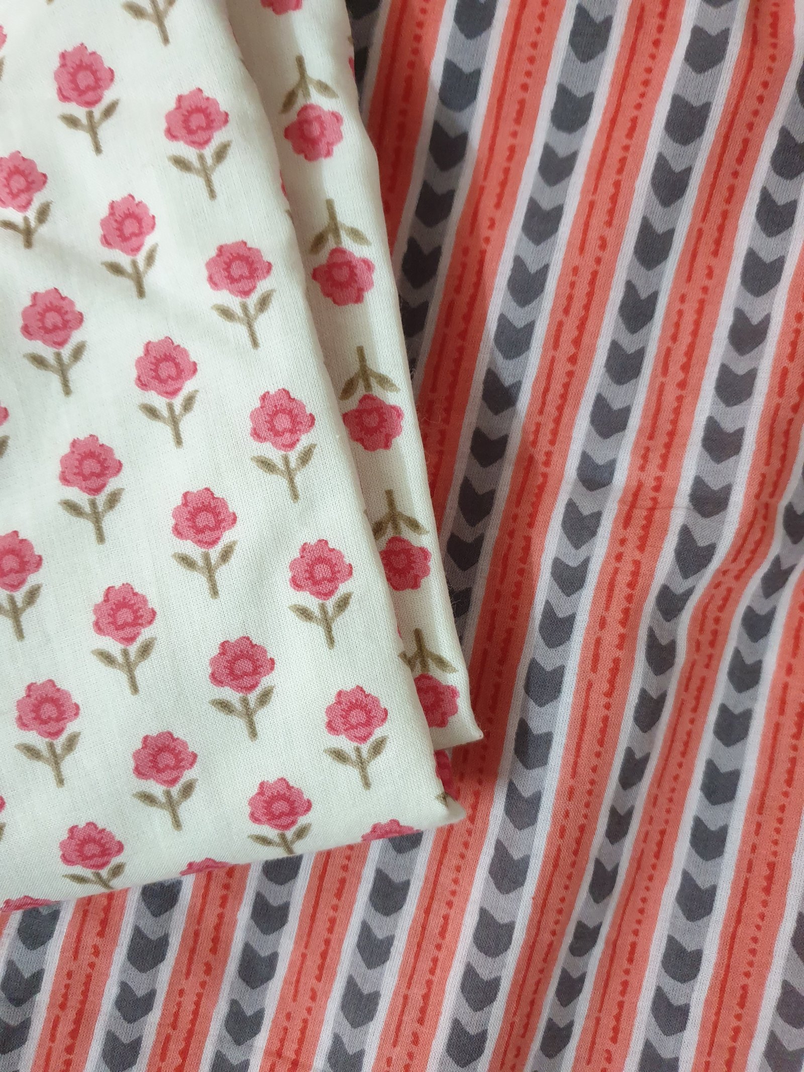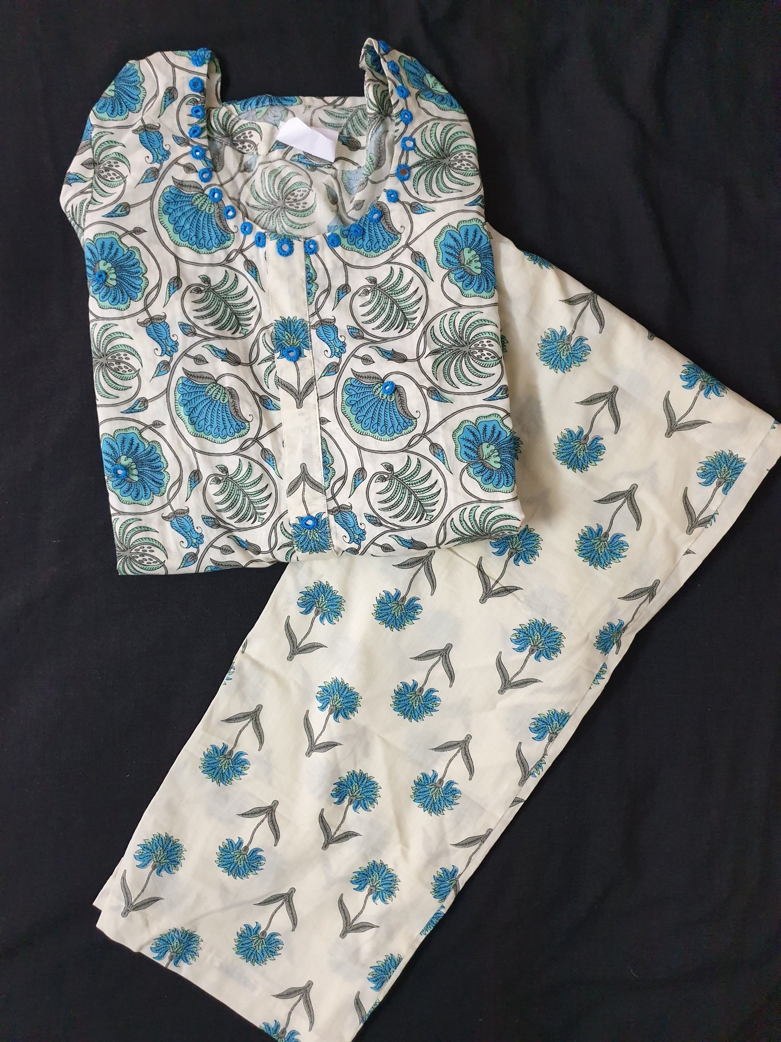 Small Flower Print Cotton Kurti Pant Set with Up and Down Pattern