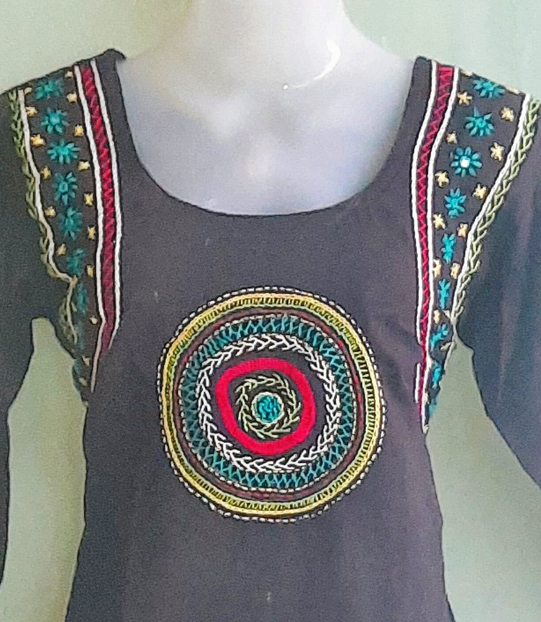 Black Cotton Kurti with Hand Work