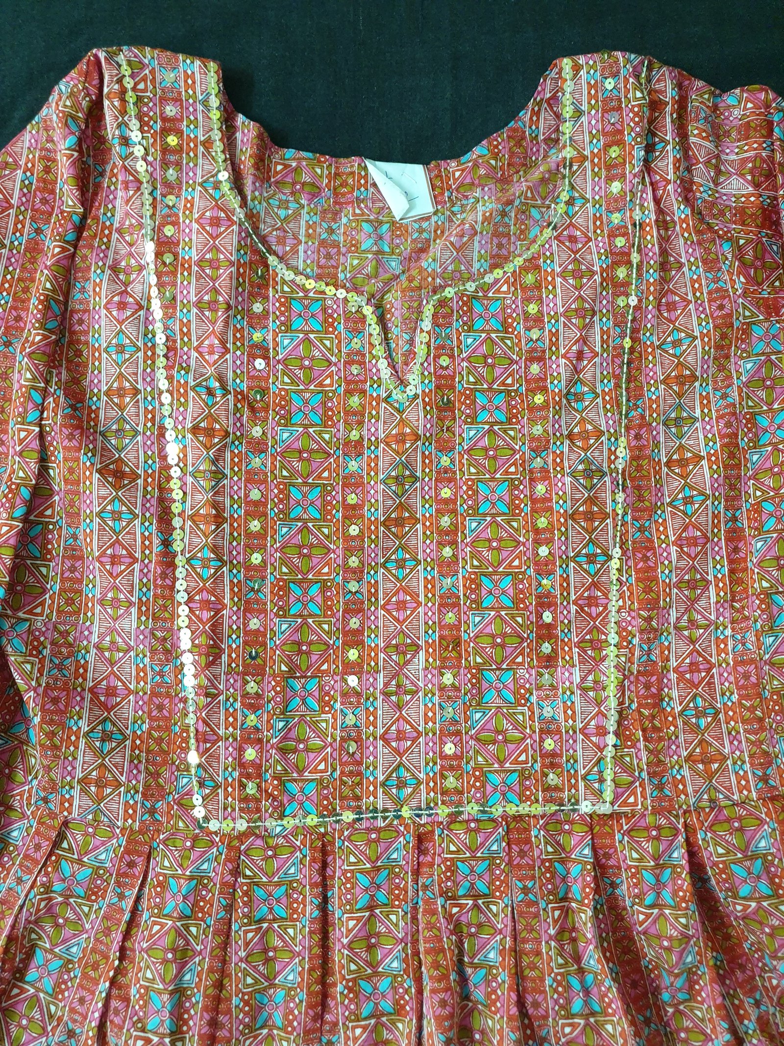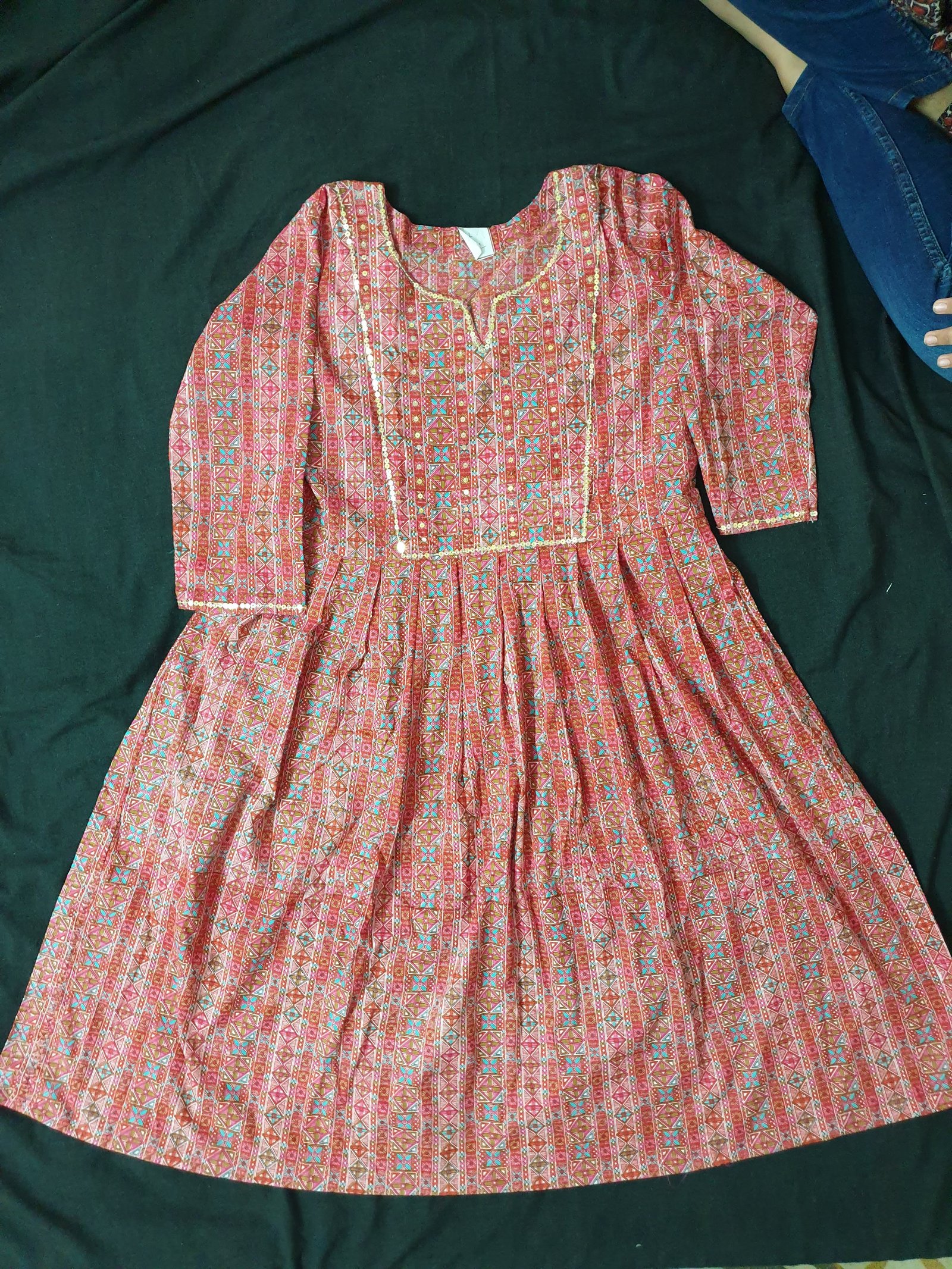 Pink Jaipuri Small Print Kurti with Tikki Work